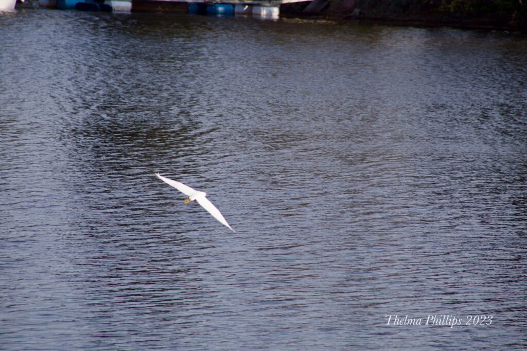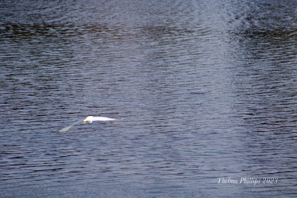 I was able to watch the egret for about an hour and get some slightly better photographs. It flew across the river and did some feather cleaning while standing on a fallen tree, then flew off to the west out of my sight.