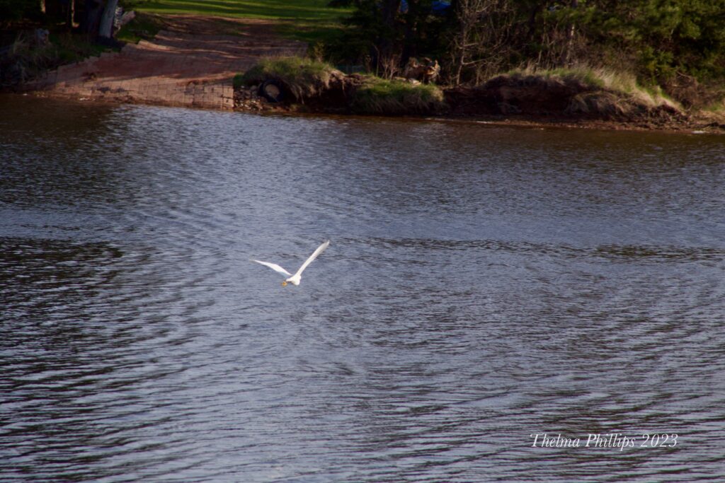 A snowy egret appeared on the shore in front of our house at 6:30 a.m. on Monday, May 15, 2023. I was able to capture a couple of photos that I uploaded to iNaturalist. I confirmed with biologist Rosemary Curley that it is a rare bird for PEI, and does not breed here. There was only one other PEI observation recorded on iNaturalist on July 2022 near Greenwich, PEI.